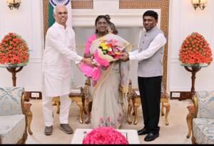 नवी दिल्ली येथील राष्ट्रपती भवनात राष्ट्रपती द्रौपदी मुर्मू यांना काणकोण लोकोत्सवाचे आमंत्रण देताना गोव्याचे कला व संस्कृती मंत्री डाॕ. रमेश तवडकर. सोबत केरळचे राज्यपाल राजेंद्र आर्लेकर.
