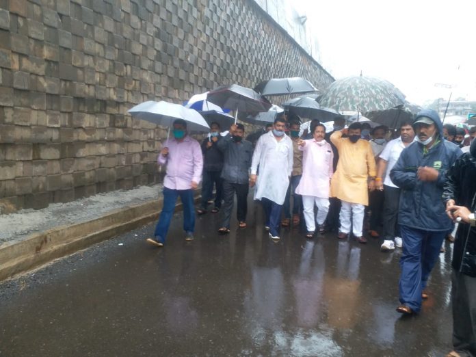 कणकवली शहरातील उड्डाणपुलाची संरक्षक भिंत दोन दिवसापूर्वी कोसळली होती त्या घटनेची पाहणी पालक मंत्री उदय सामंत यांनी आज केली. यावेळी ते म्हणाले, कणकवली शहरातील उड्डाणपूल जोड रस्त्याचे काम निकृष्ट झाल्याच्या तक्रारी कणकवलीकर यांनी केल्या होत्या त्यानंतर प्रांताधिकाऱ्यांनी हायवे अधिकारी आणि हायवे ठेकेदार प्रतिनिधी यांची संयुक्त बैठक बोलावून कामातील त्रुटी दूर करण्याचे निर्देश दिले होते तरीही चौपदरीकरण कामात दर्जा राखण्यात आलेला नाही चौपदरीकरणाचे काम निकृष्ट होत असल्याने नागरिकांच्या जीवितास ही धोका निर्माण झाला आहे. या अनुषंगाने आज मी हायवेच्या मुख्य अभियंत्यांशी बोलणार आहे त्यानंतर कणकवलीतील घटनेची सक्षम अधिकाऱ्यांमार्फत चौकशी होईल आणि यातील दोषींवर कारवाई होण्यासाठी आम्ही ठाम भूमिका घेणार आहोत.असेही ते म्हणाले. पालकमंत्री यांच्या समवेत आमदार वैभव नाईक, जिल्हाधिकारी के. मंजुलक्ष्मी, जिल्हा पोलीस अधीक्षक दीक्षितकुमार गेडाम, प्रांताधिकारी वैशाली राजमाने, उप विभागीय पोलीस अधिकारी कटेकर, जिल्हाप्रमुख संजय पडते, संदेश पारकर, सुशांत नाईक आदी उपस्थित होते.