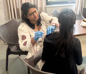 The vaccination drive was led by Dr. Shekhar Salkar, Oncosurgeon and President of the IMA Bicholim branch, along with Rtn Dr. Elaine Rodrigues, Coordinator, and Rtn Dr. Sajal Dhond. The event was attended by Rotary Club of Dona Paula President Rtn Azeema Kulkarni, Rtn Sagar Kulkarni, Rtn Felipe Alvares, Rtn Janvi Shah, Rtn Vishwesh Kamat, and Rtn Gaytri Mamat.