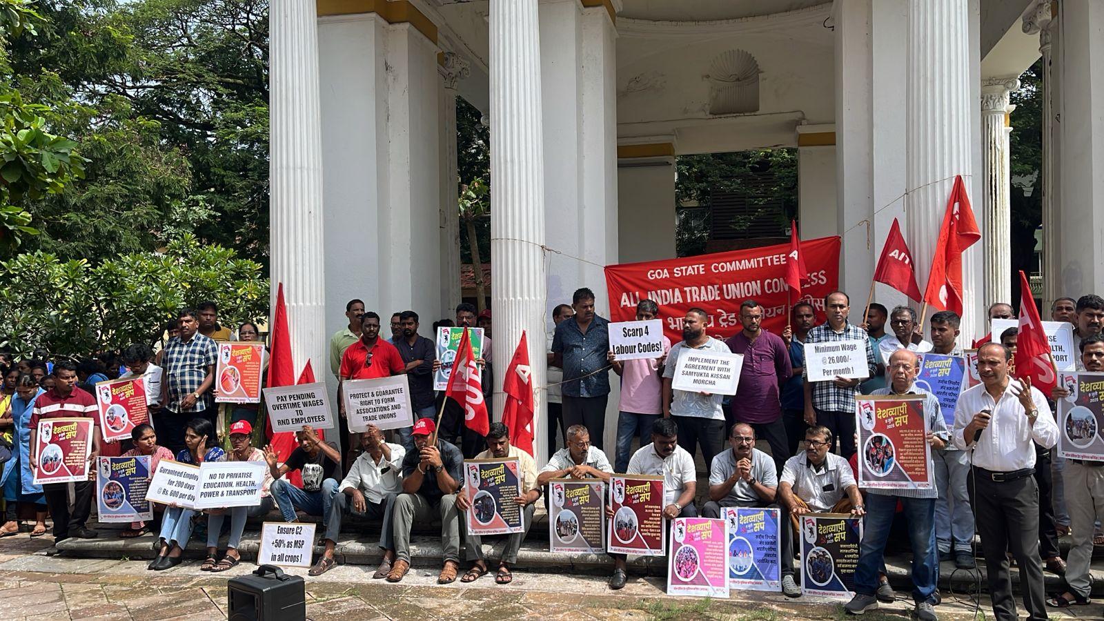 Panaji: As part of a nationwide protest, the All India Trade Union Congress (AITUC) and its affiliated unions held a demonstration in Panaji on Wednesday, opposing the anti-labour and farmer policies of both the state and central governments.