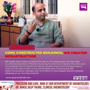 Countering the Congress’s claim that Naik could bring progress to Ponda only during his time as a Congress MLA, Dalvi remarked, “The Congress may have constructed buildings like the ID hospital and sports complex, but it was the BJP that introduced modern infrastructure and improved facilities.”