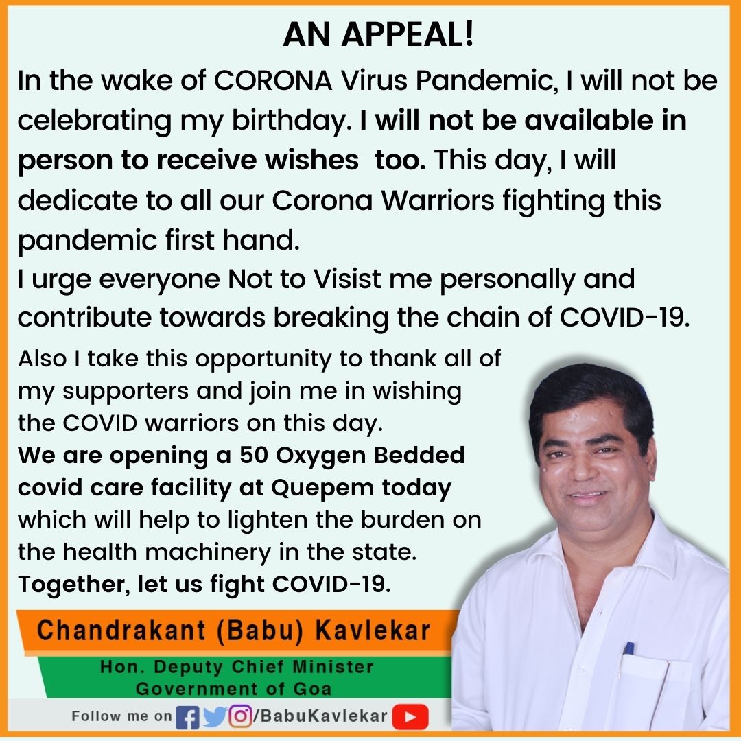 “We are opening a 50 Oxygen bedded covid care facility at Quepem today which will help to lighten the burden on the health machinery in the state,” Kavlekar said.