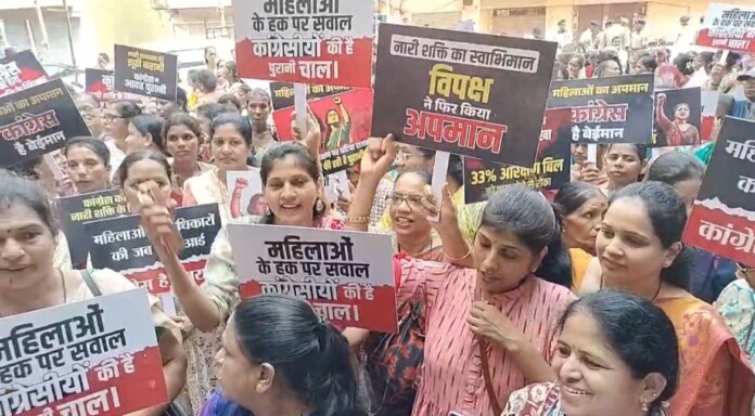 BJP Goa President Damodar Naik said that women across the country have been condemning the act of the Congress party in stopping representation for women in Parliament and Assemblies.