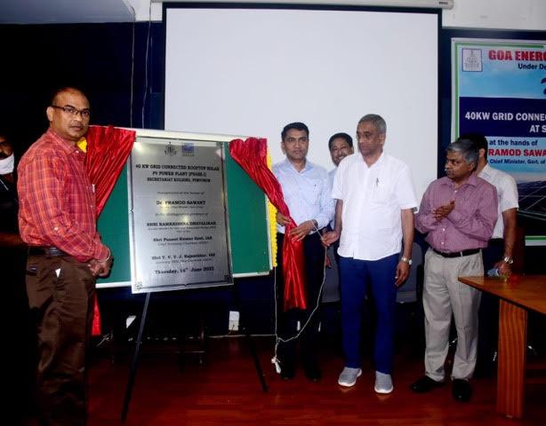 Chief Minister Dr Pramod Sawant in the presence of Minister for Power, Shri Ramkrishna Dhavlikar inaugurated the 40 Kw GRID connected Rooftop Solar PV power Plant at Secretariat Building at a function organized by Goa Energy Development Agency under Department of New and Renewable Energy Goa today at Porvorim.