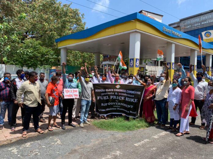 He protested at Margao against the rising fuel prices with South Goa District Congress Committee at Mohiddin Petrol Pump, Goa Pradesh Youth Congress Committee at Kurade Petrol Pump and Margao Block Congress Committee at Virginkar Petrol Pump. Former Minister Alex Sequeira, South Goa District Congress President Joe Dias, GPCC Secretary Nitin Prabhudessai, SGDCC Members Deepak Kharangate, Avita Naik, Royla Fernandes, Goa Youth Congress General Secretary Archit Naik and Deepak Pai, South Goa District Youth Congress President Ubed Khan, Margao Block Congress President Gopal Naik, were also present during the protests.