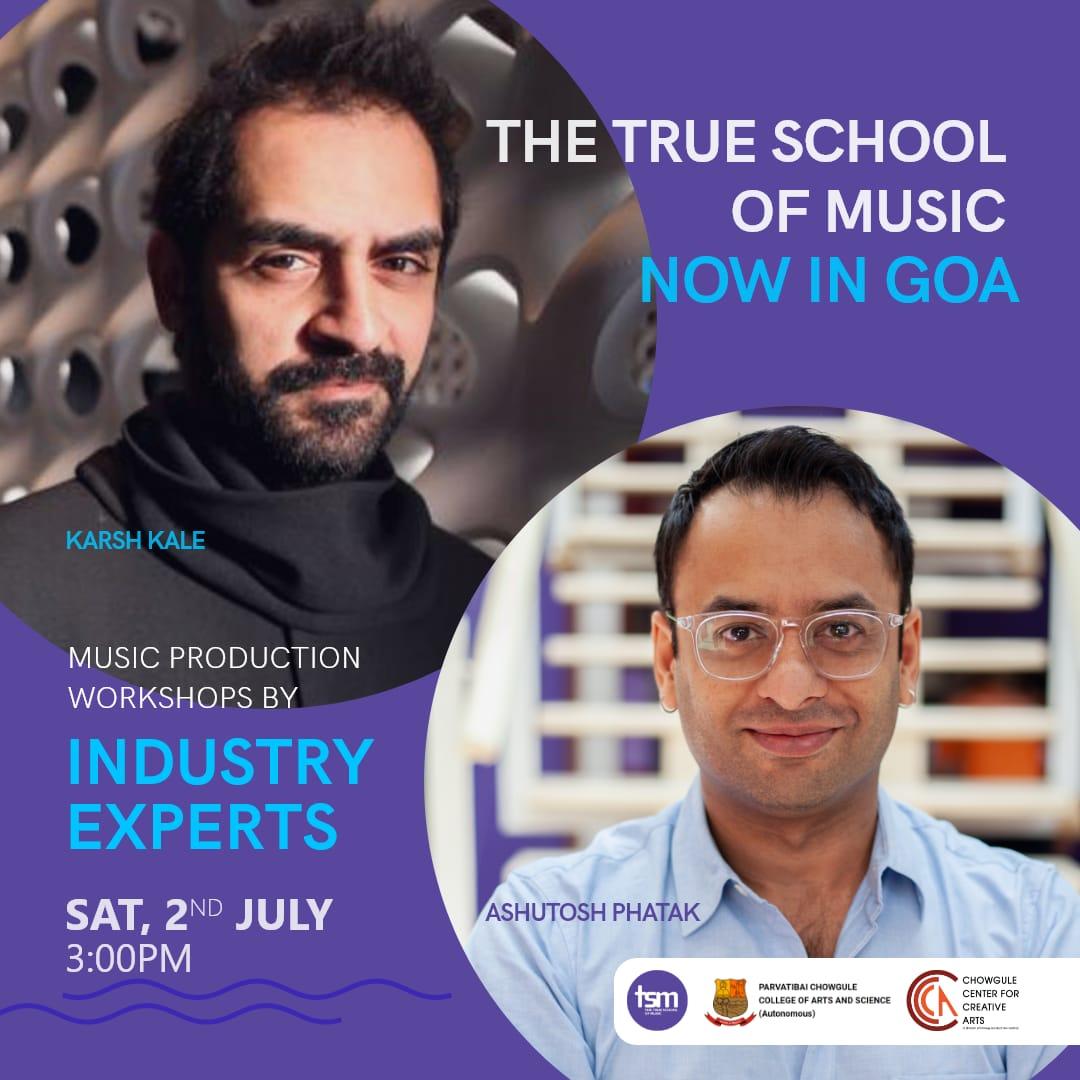 The True School of Music in collaboration with Smt. Parvatibai Chowgule College is launching its Pro Music Production Courses in Goa on 2nd July 2022. There will be free music production workshop and Industry interaction this Saturday at 3.00 pm with Award winning Music Producer and Co Founder of The True School of Music Ashutosh Pathak and Internationally acclaimed record producer, songwriter and DJ Karsh Kale about kick starting a career in music production. Venue – Lower Auditorium, Parvatibai Chowgule College of Arts and Science, Margao, Goa.