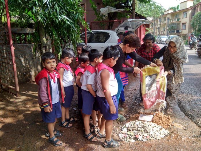 The tweets did not stop and on Friday, Kunkolienkar tweeted “Thank You #TinyTots #preschool #students for taking the initiative of repairing pot holed road just outside their school at Bhatlem, Panaji in Hon Mayor’s Ward.”