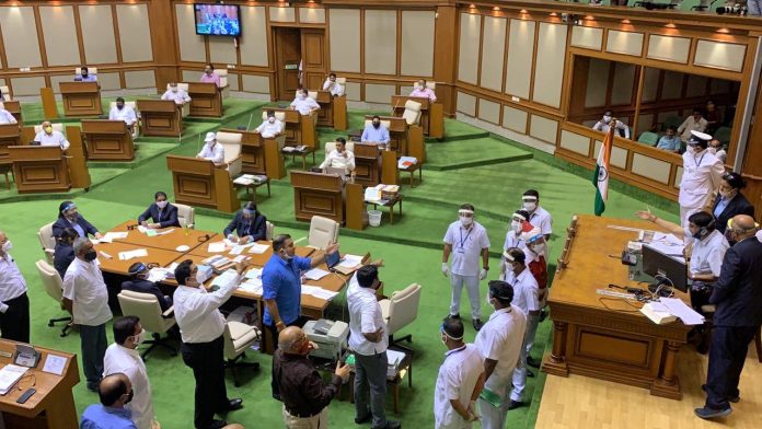 Leader of Opposition Digambar Kamat had moved “Adjournment Motion” on the floor of the House in the wake of COVID-19 pandemic, which was not admitted by the Speaker, following which the opposition benches rushed to the well.