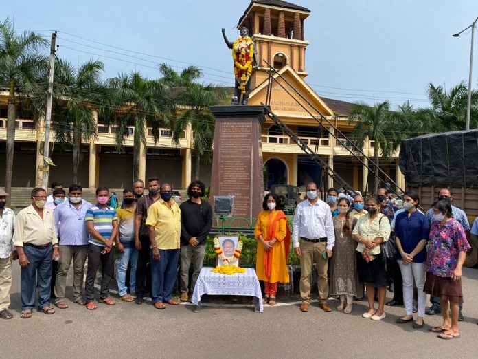 Panaji: Goenchea Raponkarancho Ekvott (GRE) on Saturday along with Cortalim MLA Alina Saldanha paid tribute to late Matanhy Saldanha on his 72nd birth anniversary. Several members of GRE assembled at his statue at Cansaulim for garlanding ceremony.