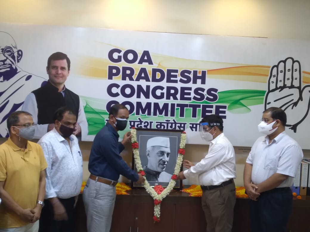 Panaji : Goa Pradesh Congress Committee paid tribute to first Prime Minister of Independent India, Pt Jawaharlal Nehru at Congress office Panaji. Present for the programme were GPCC President Girish Chodankar, Ponda Congress LeaderRajesh Verekar, Spokesperson Tulio D’Souza, General Secretary Adv Yatish Naik, General Secretary Vijai Pai, Menino D’Cruz, Secretary Everson Vales among other congress leaders.