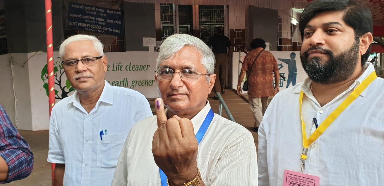 Panaji: Goa Suraksha Manch candidate Subhash Velingkar voted at Mason de Amori booth, and became one of the first voter.