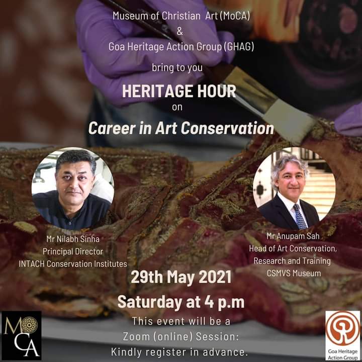 Panaji : Museum of Christian Art (MoCA) and Goa Heritage Action Group (GHAG) will be organising Heritage Hour on 29th May at 4:00 PM. The session will be a discussion on ‘Career in Art Conservation’.