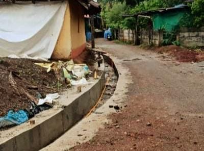 Sattari: The Nagargao Village Panchayat from Valpoi Constituency has not done any pre monsoon work in its ward of Nanoda village. The cleaning of gutters is incomplete and the gutters have been kept open creating danger spot on the flooded road.