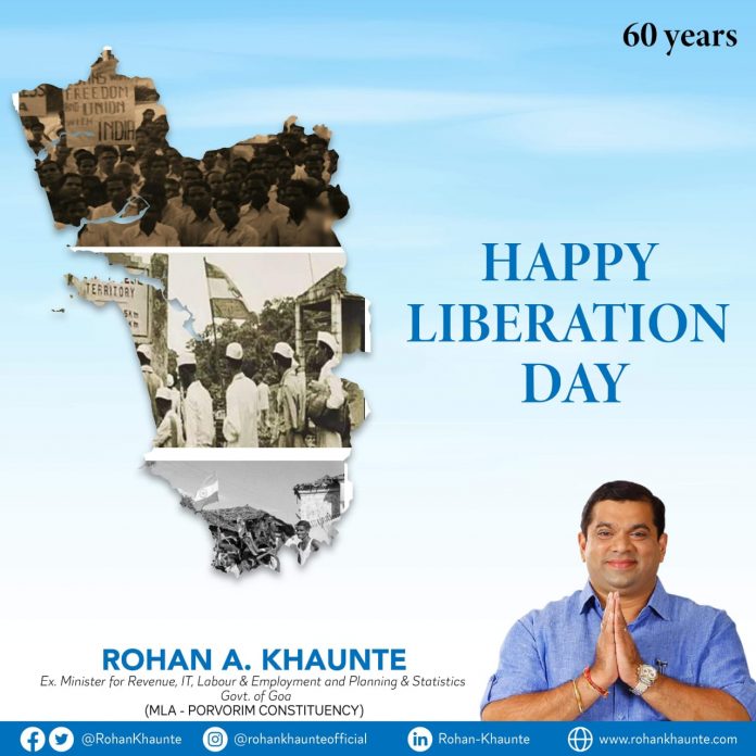 Panaji: Asking the people to retain the spirit and protect the beauty of Goa, Porvorim MLA Rohan Khaunte wished his fellow Goans on the occasion of 60th Liberation Day.
